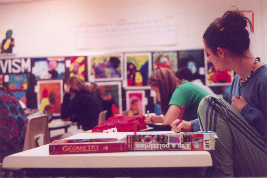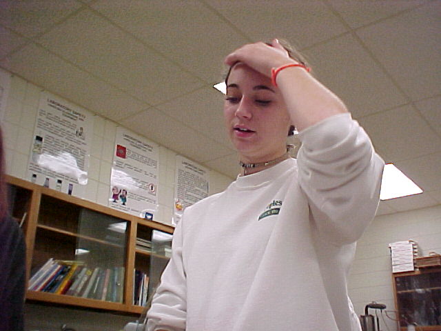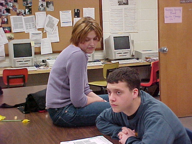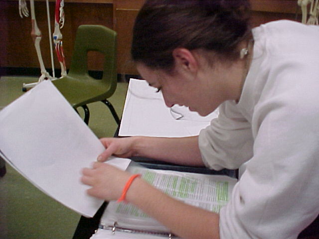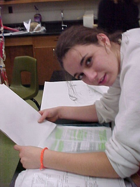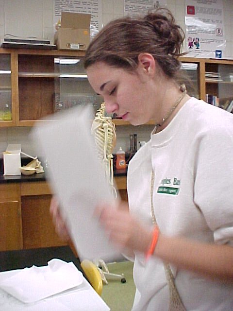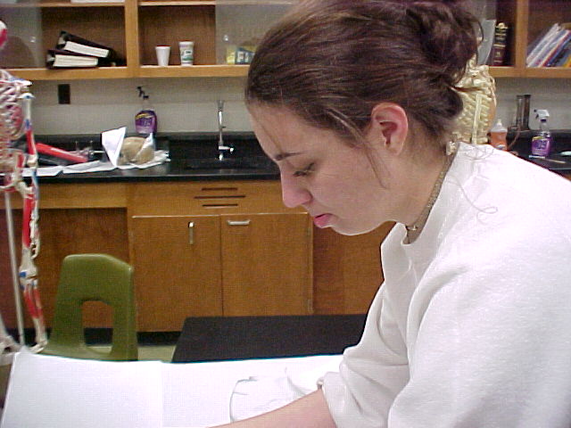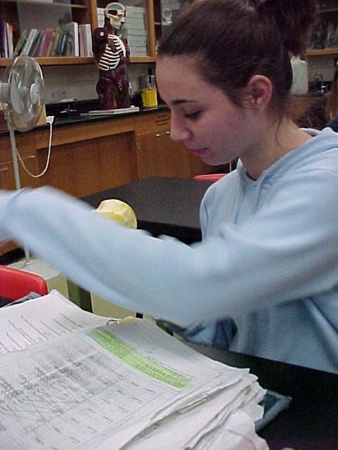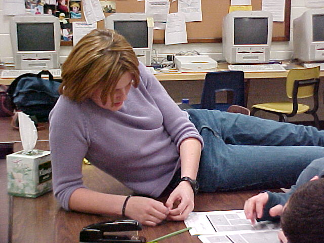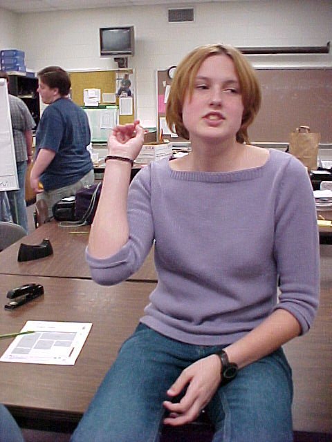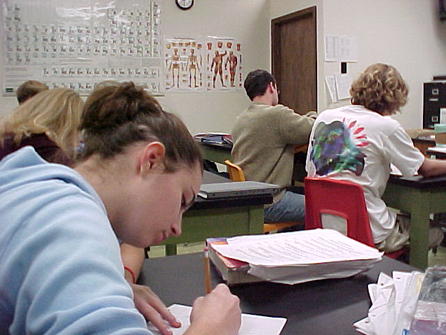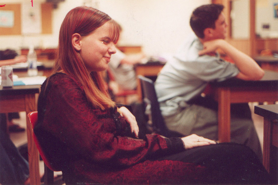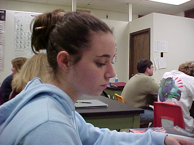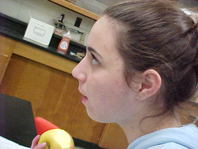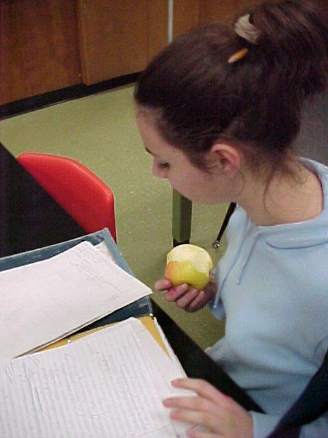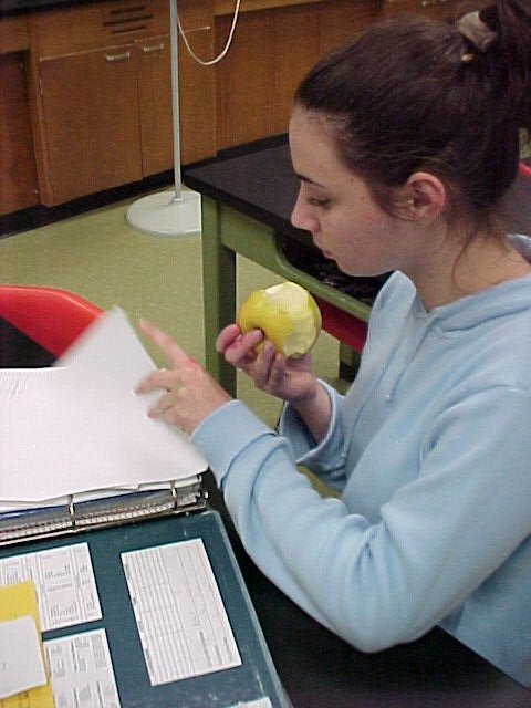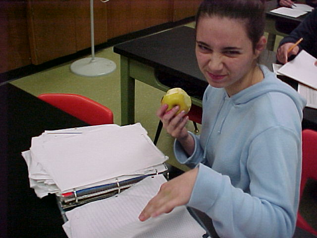 Rachel Trusty munches on an apple in Mr. Lonon's class. |